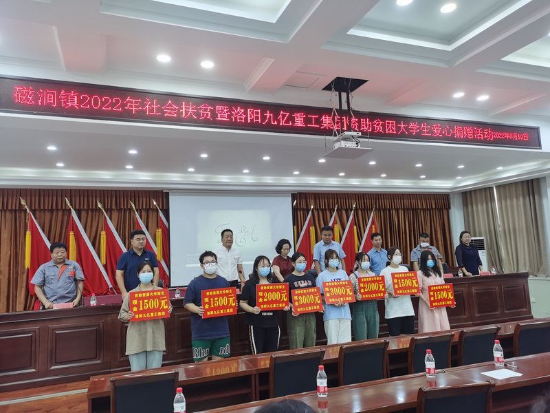 愛是與生俱來的,在血液里流動(dòng),在骨子里結(jié)晶,它源源不斷的由心而生,永不枯竭,只要人人都愿意奉獻(xiàn)一點(diǎn)愛,就如甘霖沐浴大地,人間處處盛開幸福之花! 為響應(yīng)洛陽(yáng)市政府精準(zhǔn)扶貧政策,洛陽(yáng)九億重工集團(tuán)有限公司及董事長(zhǎng)王九茂積極參與捐資助學(xué)的慈善義舉活動(dòng),特做出如下決定:1、公司幫扶磁澗鎮(zhèn)2017年新招貧困大學(xué)生21名順利入學(xué),每人資助2000元,總計(jì)肆萬貳仟元整; 2、總經(jīng)理王九茂(縣政協(xié)委員)以個(gè)人名義資助磁澗鎮(zhèn)南窯村2017年新招大學(xué)生6名,總計(jì)12000元整; 我相信,在社會(huì)各界的大力支持和共同努力下,我們的“愛心助學(xué)”活動(dòng)將會(huì)惠及到更多的同學(xué),為了夢(mèng)想,刻苦讀書、報(bào)銷祖國(guó),廣大同學(xué)也一定會(huì)在溫暖的社會(huì)大家庭里茁壯成長(zhǎng),必將成為國(guó)家建設(shè)的有用之才! 洛陽(yáng)九億重工集團(tuán)有限公司 董事長(zhǎng):王九茂