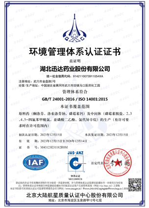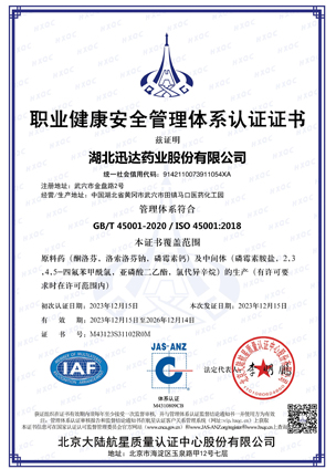 湖北迅達(dá)藥業(yè)股份有限公司是專業(yè)從事醫(yī)藥原料藥及中間體生產(chǎn)經(jīng)營(yíng)的國(guó)家重點(diǎn)高新技術(shù)企業(yè),也是國(guó)家 4A 標(biāo)準(zhǔn)化良好行為企業(yè)、湖北省智能制造試點(diǎn)示范企業(yè)、湖北省國(guó)際科技合作基地、湖北省信息化與工業(yè)化融合試點(diǎn)示范企業(yè)、湖北省創(chuàng)新型企業(yè)、湖北省上市后備“金種子”企業(yè)、省級(jí)“專精特新”企業(yè)、上云標(biāo)桿企業(yè)。公司被評(píng)為湖北省醫(yī)藥工業(yè)五十強(qiáng)、湖北省醫(yī)藥行業(yè)創(chuàng)新型企業(yè)十強(qiáng)、湖北省醫(yī)藥行業(yè)出口型企業(yè)十強(qiáng)、湖北省優(yōu)秀企業(yè)、湖北省“重合同守信用”企業(yè)、湖北省模范勞動(dòng)關(guān)系和諧企業(yè)、湖北知識(shí)產(chǎn)權(quán)示范企業(yè)、中國(guó)外貿(mào)出口先導(dǎo)指數(shù)樣本企業(yè)。